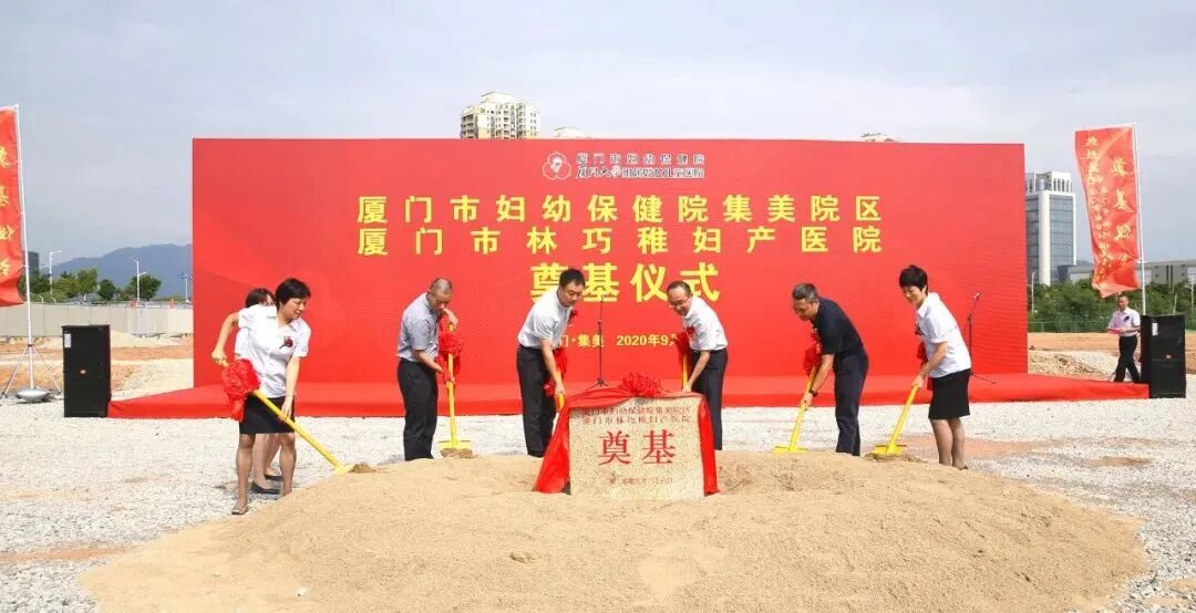 在热烈的掌声中,与会领导、嘉宾共同为奠基石碑揭幕、培土,宣告厦门市妇幼保健院集美院区项目建设的正式启动,开启了医院发展建设的新篇章。