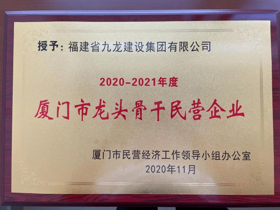 首个“厦门企业家日”以“弘扬企业家精神,推动高质量发展”为主题,启动仪式上对厦门市2020-2021年度龙头骨干民营企业、工商联系统“爱心厦门”建设典型、2017-2020年度脱贫攻坚突出贡献企业、抗击新冠肺炎疫情捐赠优秀组织单位、福建省“四好商会”等进行授牌,在褒扬爱心、表彰善举的同时,以榜样的力量引领、激发更多的民营经济人士投身公益事业、勇担社会责任。我司福建省九龙建设集团有限公司获评厦门市2020-2021年度龙头骨干民营企业,接受表彰。