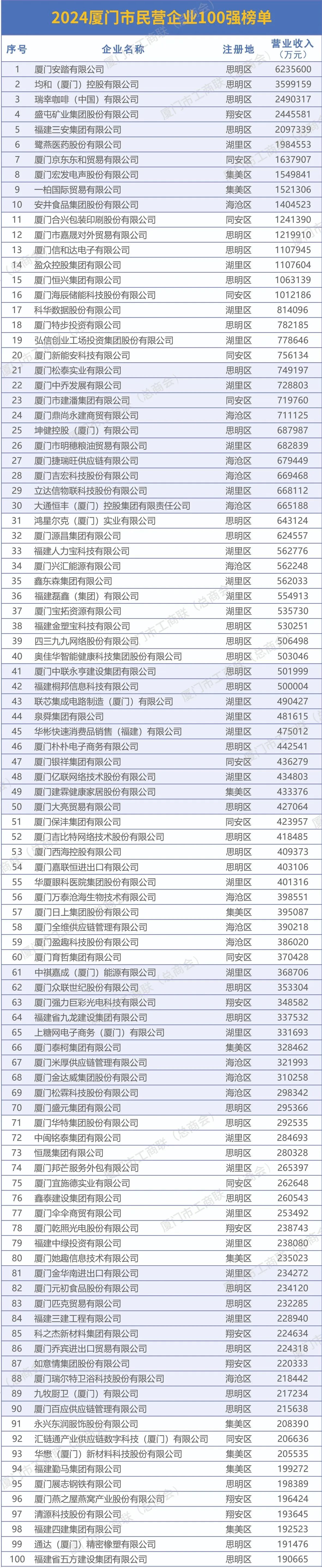 近日,2024年厦门企业家日大会召开,会上,“2024厦门市民营企业100强”系列榜单发布。“2024年厦门企业家日大会”由厦门市委、市政府主办,厦门市工商联(总商会)与市委统战部、市发改委共同承办。