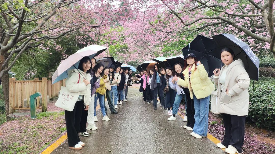 虽然阴雨天气,丝毫不影响大家的热情和期待。漫步于樱花小径,任微风拂落花瓣轻吻肩头,在樱花树下驻足留影,笑靥与花影相映成画。
