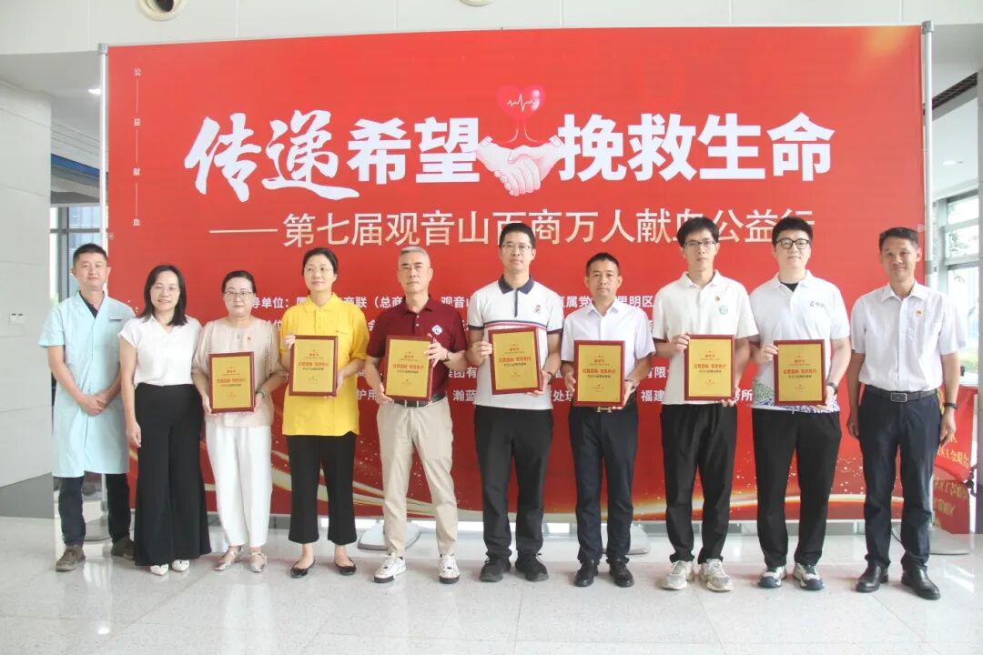 7月9日,为庆祝建党104周年,大力弘扬“人道、博爱、奉献”的红十字精神,“传递希望 挽救生命——第七届观音山百商万人献血公益行”在观音山营运中心9号楼举办。