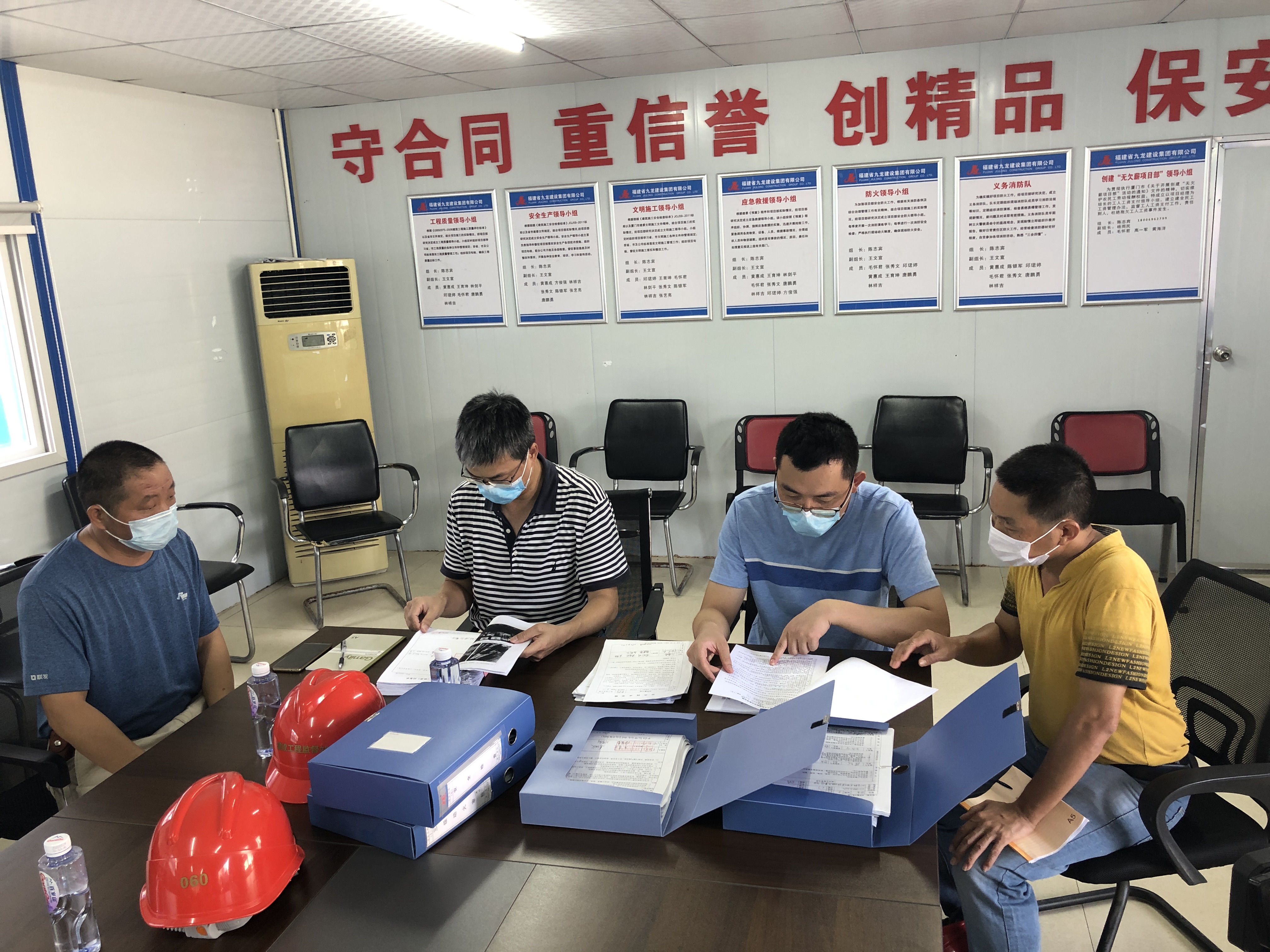 结束了现场检查后,一行人返回至会议室,由一科科长黄雄平对项目部施工资料进行检查,对项目部资料员进行相关问题的提问。