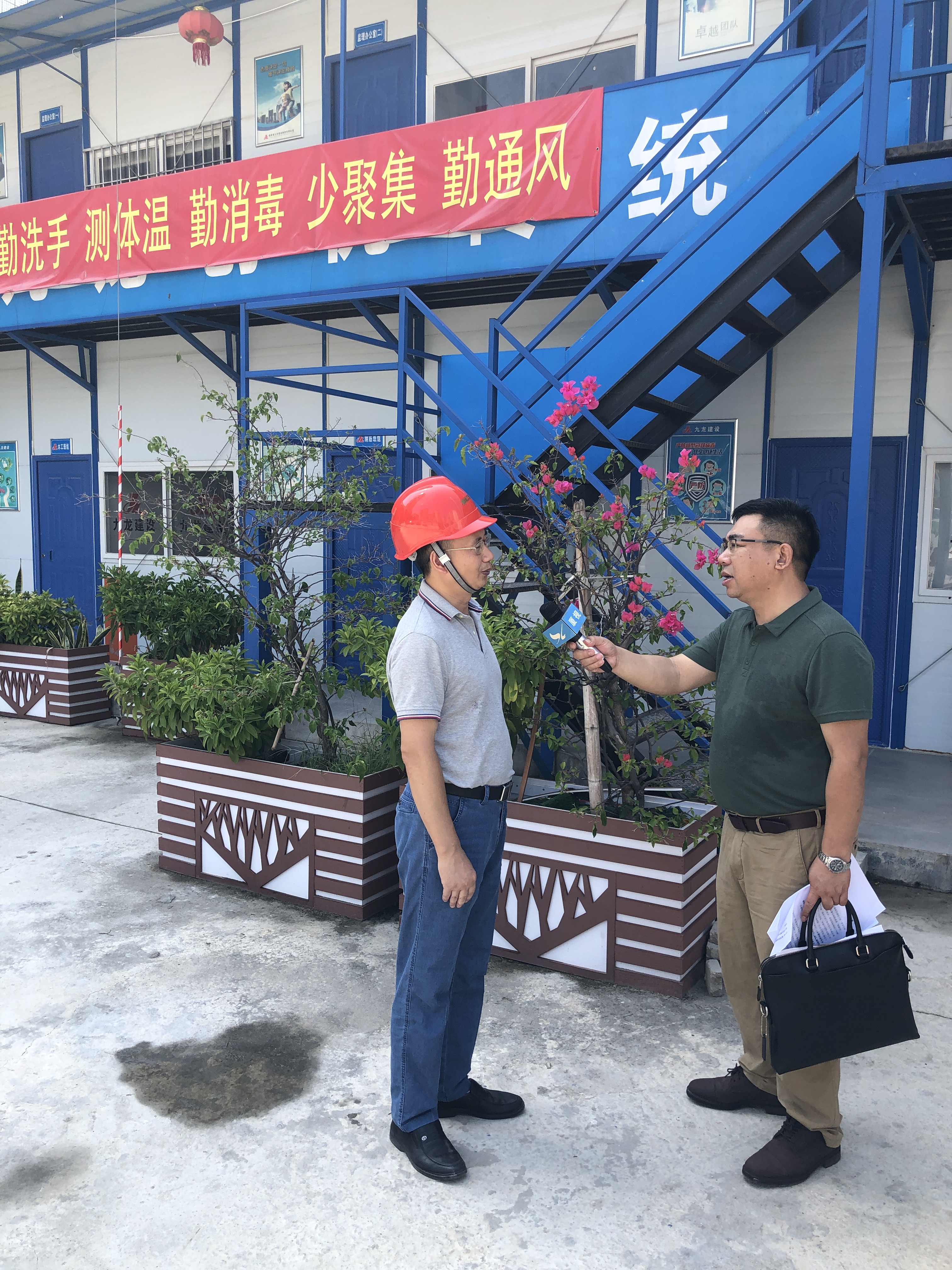 7月24日上午,厦门市建设局工程处李勇奇、厦门市质量安全站巡视员周天明及厦门市质量安全站一科科长黄雄平等带队到我司承建的禾祥鑫天地项目进行安全生产检查,厦门电视台记者全程专项跟踪报道。