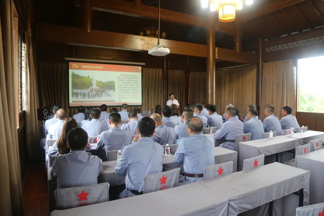 到达古田,大家便统一换上了红军服,片刻间,一支容光焕发、军容整肃的革命队伍便呈现在众人面前。来到教室,先由总经理林爱花和党支部书记徐建木作开班动员讲话,接着由专业老师带来《胜利从古田来》党课学习,重温革命先烈们的光荣事迹,深刻感受“古田会议”的精神。