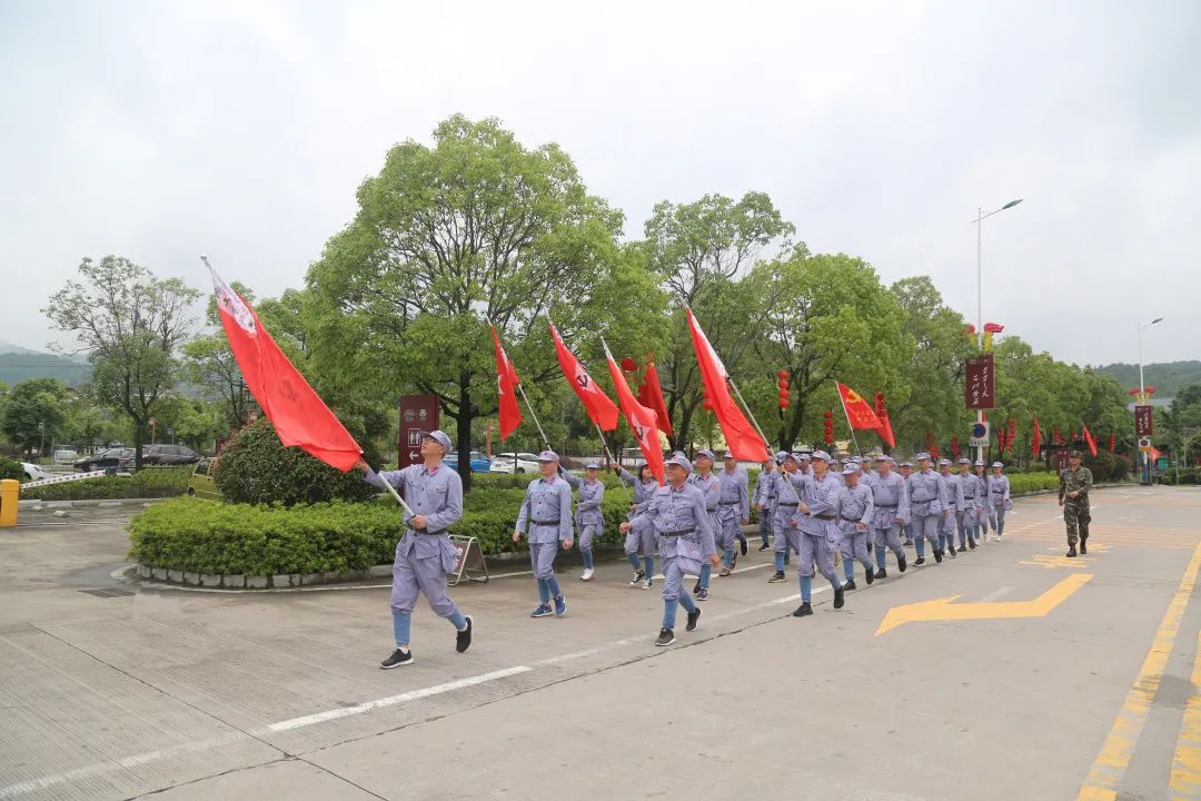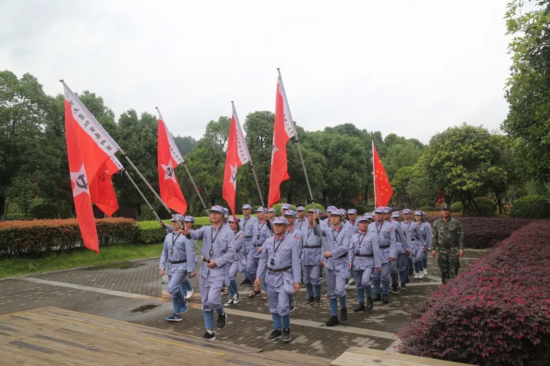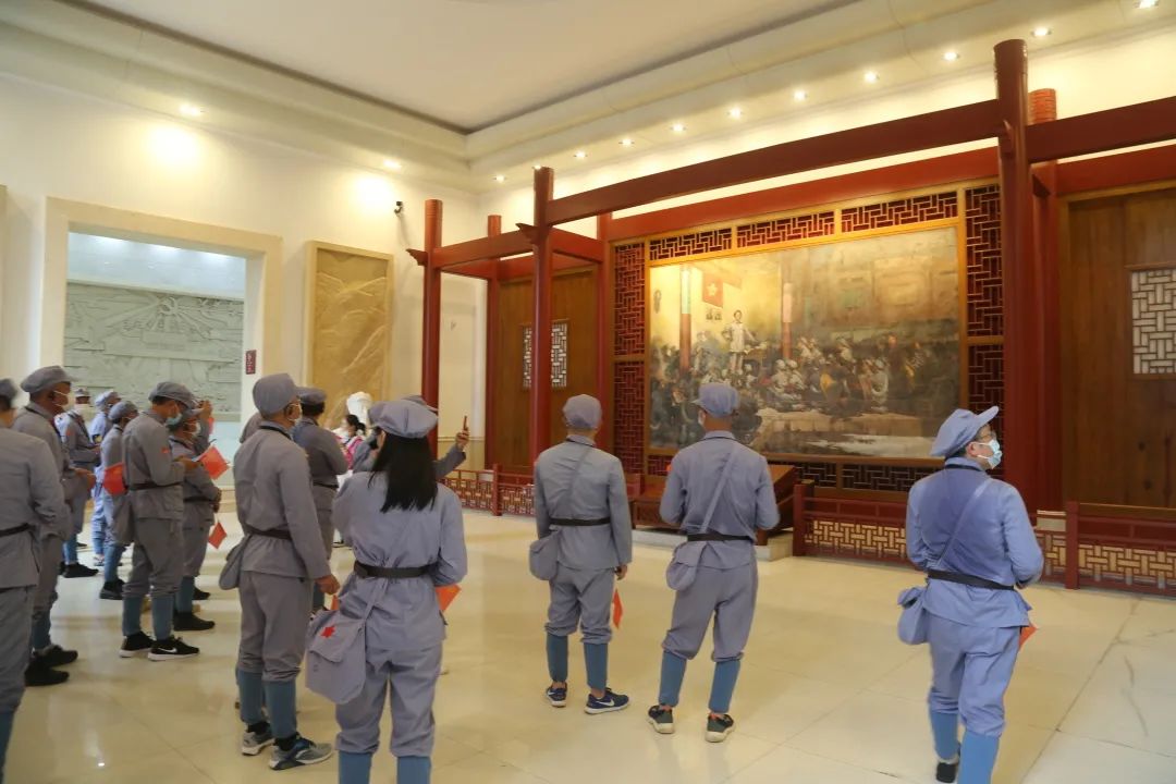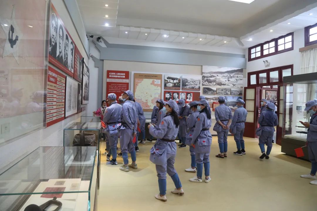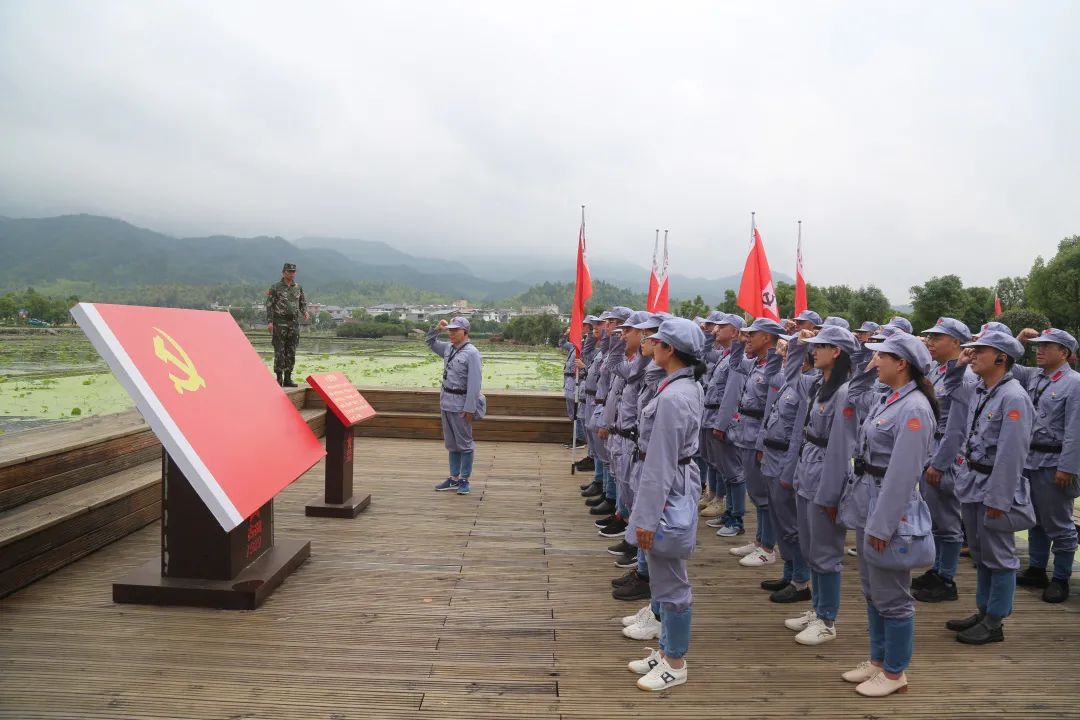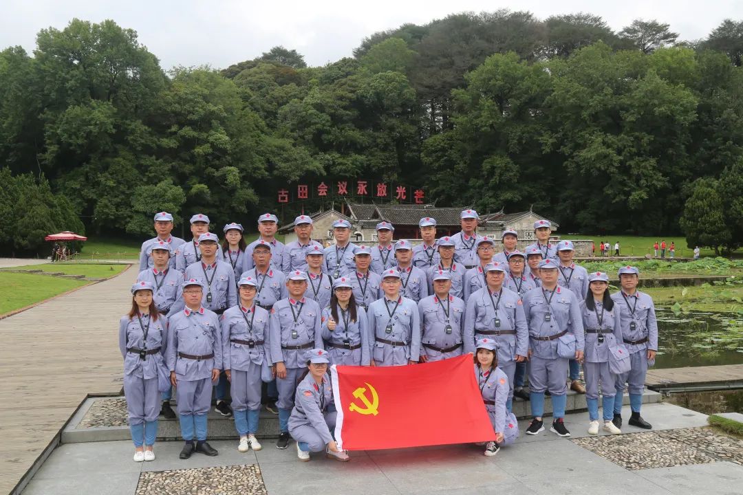 全体学员穿上红军服,踏上古田红色教育基地,进行庄严的授旗仪式。大家齐步前行,前往古田会议旧址,在党旗前,党支部书记徐建木带领全体党员重温入党誓词,铭记对党庄严承诺,不断进取,奋斗终身。