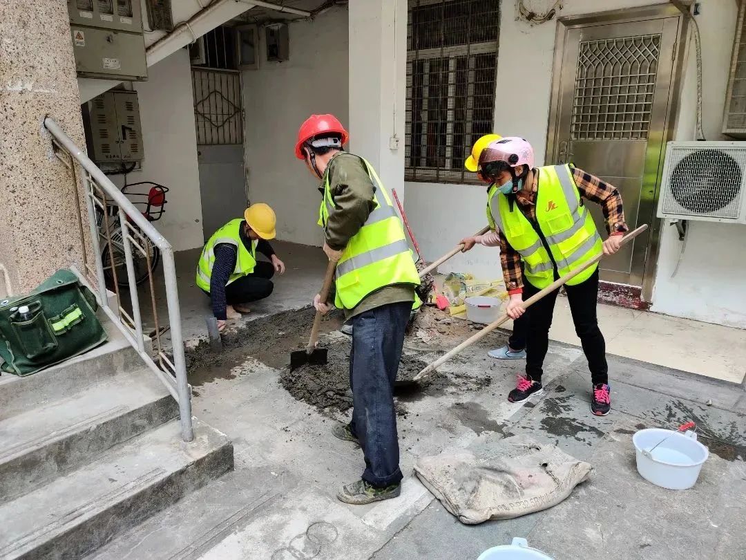 为积极响应厦门市创建全国文明典范城市的号召,3月19日-24日期间,九龙集团组织项目工人,前往厦港街道鸿山社区、开元街道溪岸社区,对部分老旧小区的立面、墙面和路面脏污破损进行修复,包括墙面粉刷、金属上漆、水泥抹灰填平等施工工作,并进行了小区卫生清理、楼道清理等清洁工作。仅用了短短五天时间,这些老旧小区焕然一新,居民们的脸上也露出了新的笑容。