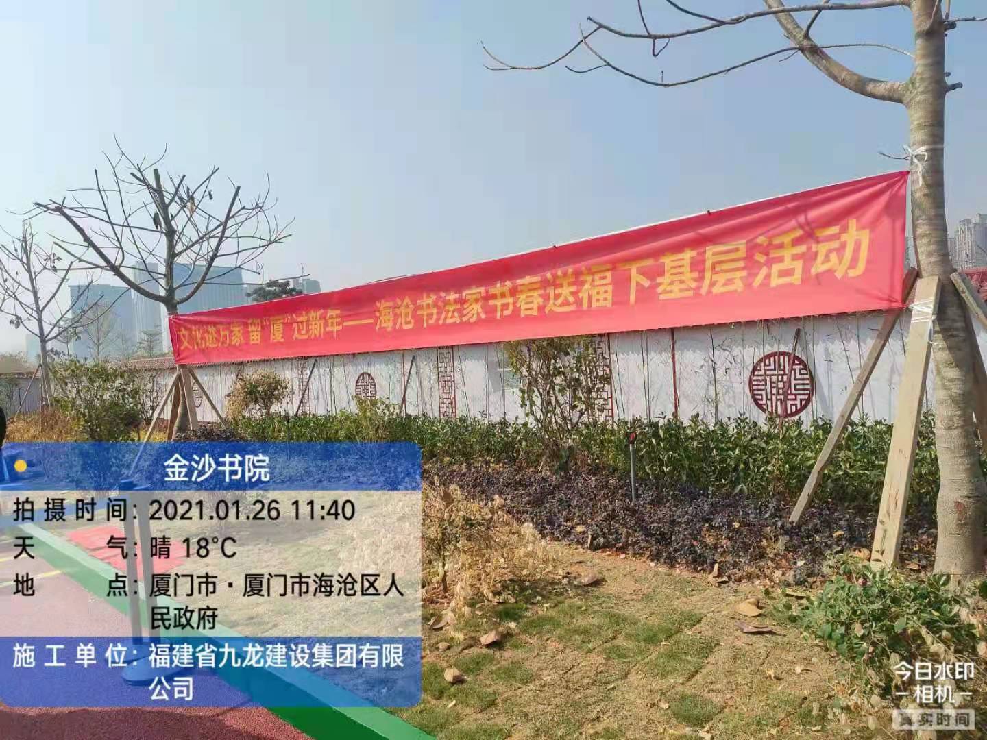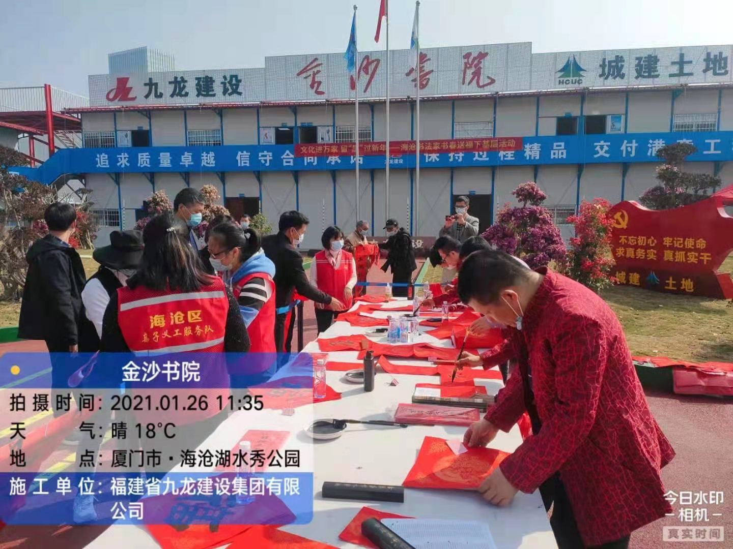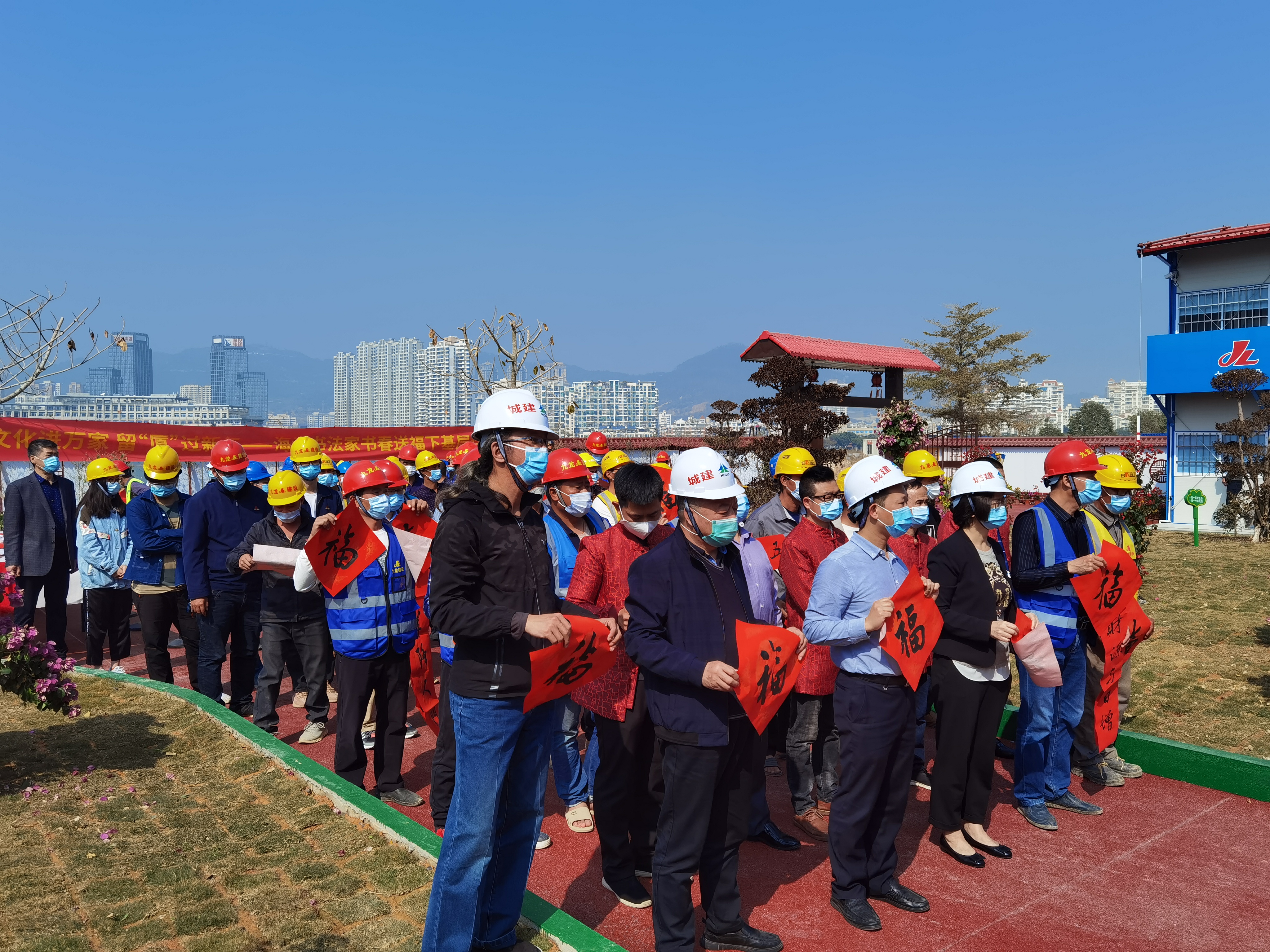 1月26日,由中共海沧区委宣传部、中共海沧区委文明办、海沧区文化和旅游局主办的“文化进万家,留'厦'过新年”进工地送福写春联活动走进我司承建的海沧金沙书院项目。海沧区委宣传部部长欧阳丽娟出席参加了本次活动。